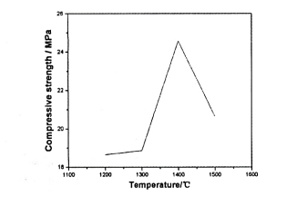 海南大學的吳新正等人在文章中使用較純的石英砂為原料,針對石英砂析出方石英造成的復合材料整體性能降低問題,對石英砂的析出過程和機理進行了研究,探索石英砂的方石英化影響因素,以便為低成本、高穩定性材料的制備提供依據。作者利用萬能材料試驗機,對燒結后的試樣進行強度測試,以檢測在石英砂析晶后的相轉變行為。結果發現熱處理溫度在1200~1400℃之間,隨著溫度升高,試樣的耐壓強度得到大幅度的提高,在1400℃達到較高。當燒結溫度達到1500℃,耐壓強度逐漸下降。
